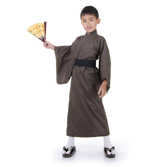 Kitsune Brown Japanese Boys Kimono Robe Costume