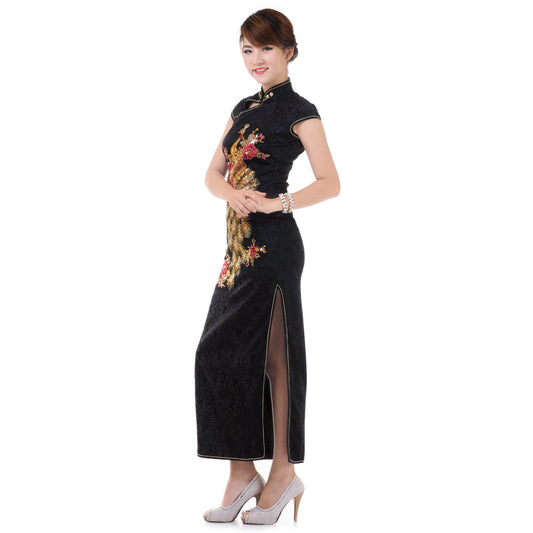 Black Jade Dragon Qipao Dress Hei Long Elegance