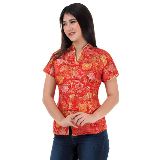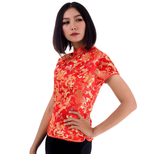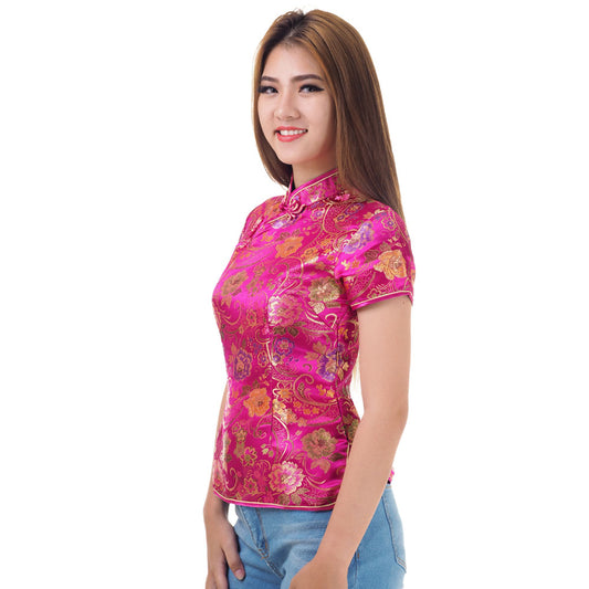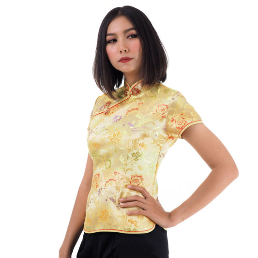 Golden Chic Luxury Chinese Floral Qipao Blouse