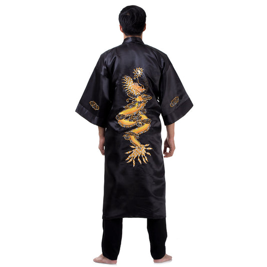Black Shenlong Reversible Dragon Kimono Robe for Men