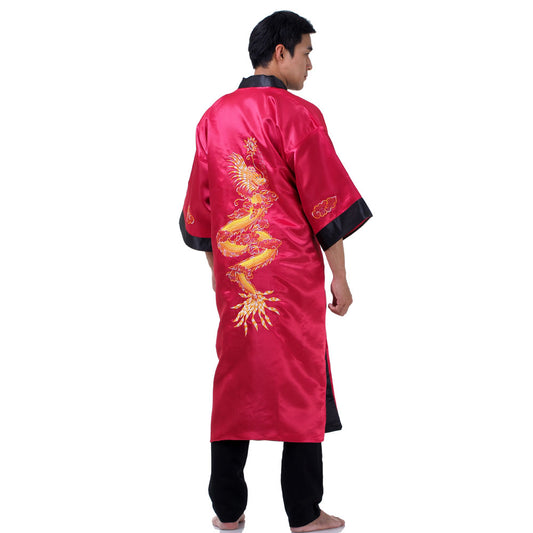 Burgundy Zhulong Reversible Dragon Kimono Robe for Men