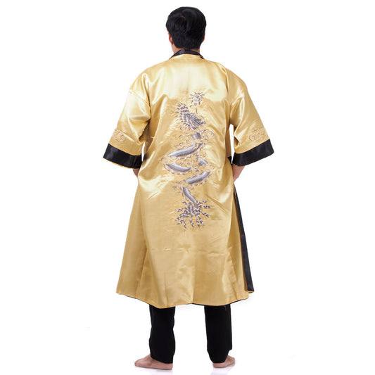 Gold Kaida Reversible Dragon Kimono Robe for Men