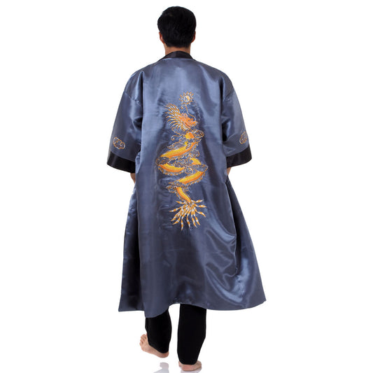 Gray Mizuchi Reversible Dragon Kimono Robe for Men