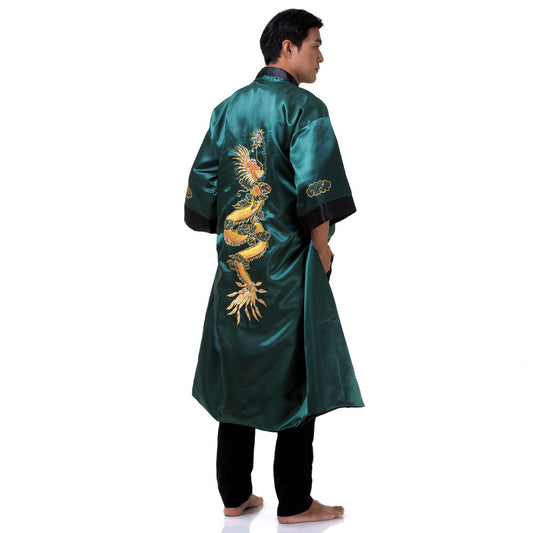 Green Fucanglong Reversible Dragon Kimono Robe for Men