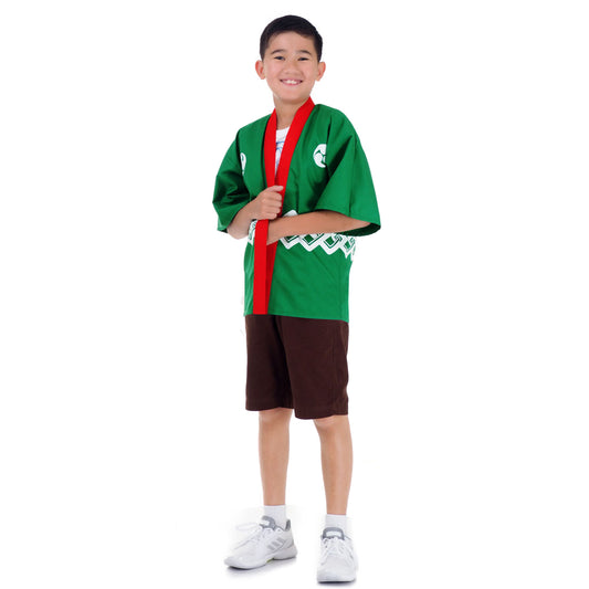 Green Japanese Kids Happi Kimono Jacket Midori Leaf
