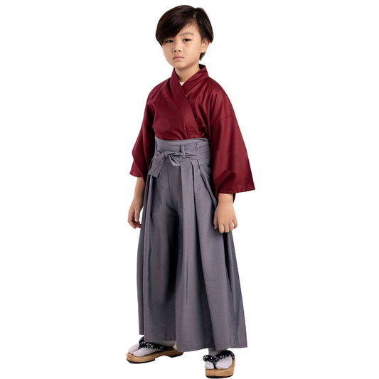 Japanese Kids Samurai Costume Hakama Set Crimson Ronin