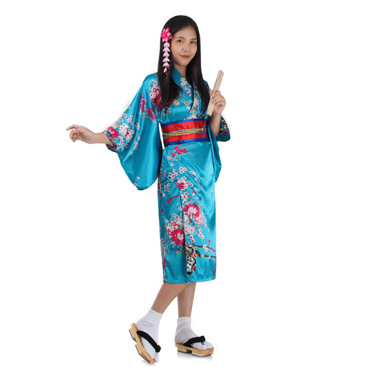 Ayumi Turquoise Geisha Kimono Costume for Girls